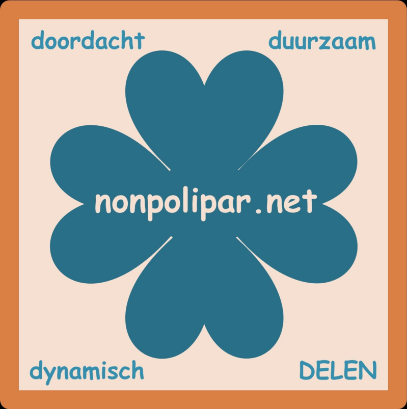 Is alleen vrijheid van keuze nodig? Nee, want dan kan het al snel ontaarden in gedachteloos delen. Wie zo deelt, riskeert strijdigheid en strijd. Nonpolipar gaat daarom uit van doordacht delen. Dat is ook een grote stap naar duurzaam delen, een ander vertrekpunt van nonpolipar. Het delen hier en nu mag niet ten koste gaan van andere plekken en toekomstige tijden. Daarbij is veel onzeker, wat delen een dynamisch en adaptief gebeuren maakt. Dat maakt de drietrapsraket compleet. Nonpolipar staat voor doordacht, duurzaam en dynamisch delen.